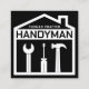 Retro simplistic but professional cover consisting of wrench, screwdriver and hammer in frame in shape of house. Ideal for handyman services, construction company, home repair and remodeling and more. Background color is adjustable. Use existing logo or change it with personal one.
