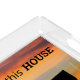 Rectangular, acrylic tray that features the photo image of a colorful sunset sky and a black house silhouette along with a house blessing that reads "God Bless this House" in black lettering. Select your tray size. NOTE: Medium size tray will accommodate standard size dinner plate.