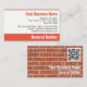 Introducing a stylish and professional double-sided business card designed specifically for builders, available exclusively at your online Zazzle store. This builder's business card features a captivating front design that showcases a pattern of bricks, perfectly mimicking a brick wall background. This eye-catching visual element not only emphasizes the builder's expertise in construction but also adds a touch of sophistication to the overall design.