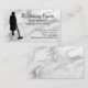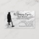 House cleaning business card done in a marbled look of silver, gray and white, and with graphics of a maid's silhouette. Personalize the custom text to suit your business needs.