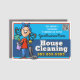 What a bright, friendly and cheerful way to promote your house cleaning business! Features a happy woman with cleaning supplies.