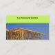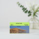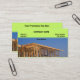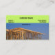 Fabulous Business Card for anyone in the home building industry - This home under construction is ideal to advertising your construction business. A house frame rises against a clear blue sky and a green text panel with black text compliment the image. Text is fully customisable for your business needs. The image of house frame is featured again on the back side of the card with room for promotional text.