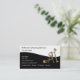 Housekeeper business cards with background color you can customize, black accent color and cleaning lady symbol in a modern design template. Personalize the text to work with your cleaning service, maid services, or house cleaning.
