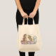 I bought this for a younger friend who had recently moved into her first apartment. She's environmentally conscious and prefers reusable/renewable products when available. I thought it'd be great for going to the grocery store. The bag is quite roomy (more than I expected it to be) and the design is adorable. The only thing lacking was the option to add text to the bag either above the image or on the back. Perhaps there was a way to do this and I just missed it. If that's the case, then I would give it a full 5 stars. The image was centered on the front panel and was as vibrant as a mostly-pastel image can be. All the details were there; I just wish I could've added my own text.