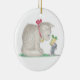 Lightweight, smooth, pure white ornament with nice sheen. Perfect size to be seen from across the room ... and to attract closer inspection! Price was great for ordering enough for the whole family! Clear, bold black design just as requested. Matches the order exactly. Just so nice!