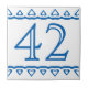 House Number Tile. White background with blue border. Customize colors available.