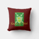 Fun throw pillow with a medieval style crest design for pickleball players, has crossed swords on shield with pickleball court, and "House of Dink" gold text on dark red background.