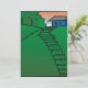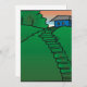 A blue house sitting atop a green hill. This design looks really effective on these Invitation