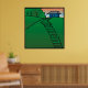 A blue house sitting atop a green hill. This design looks really effective on these Poster