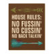 HOUSE RULES: NO CUSSIN' OR FUSSIN' wood 11x14 SIGN