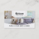 Great beautiful, professional design feathuring white border accents and an image of beautifully staged living room with sofa and art and table. Great card for real estate, home staging business, furniture, realtor, property management, hotel, airbnb, rentals, apartments, houses, vacation rentals, interior designer, renovations, construction and more.