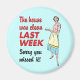 Have a little fun with this magnet that shows a 1950s-era housewife holding a plate with the text, "The house was clean last week, sorry you missed it" to the left of her. A fun vintage look if your house isn't always the tidiest. The background color can be changed by clicking the "Customize It" button and selecting "edit">"Background color" to choose a new color. Available with matching products.