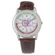 The Houseboat Commander Men's Classic Brown Leather Strap Watch that you can personalize with your name, or as a gift for the houseboat commander you know. You can even add your own short message if you like. Sometimes a classic look is the best way to go! The Men's Classic Leather Watch from eWatchFactory will match any style, whether you are wearing it as an accessory to your work outfits or as an accouterment to your going-out attire. This Men's wristwatch sports a watch face made of Alloy and comes with a Leather strap. The watch face measures 1.14" diameter, and the watch strap is 9.4" x 0.708." Case: 1.33" diameter, 3-hand analog Japan Quartz,® two strap colors available - Black and Brown. Buckle closure, Water Resistance: Up to 3 ATM (98.4 ft) a 1-year manufacturer limited warranty, and the Battery is included. This product is recommended for ages 13+.