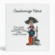 Housekeeper Humor T-shirts, sweatshirts, mugs, cards, stickers, magnets, keychains, pillows, mousepads, iPhone cases, luggage tags, placemats, and other attitude apparel and gifts featuring Stella dressed as a housekeeper and saying she's a great housekeeper, every time she leaves a man she keeps his house!