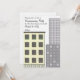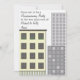 A housewarming party invitation to celebrate a new apartment. Front features an apartment building with tall office buildings in the background. Personalize the text on front and back.