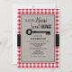 Trendy and cute red gingham and kraft paper design with a classic skeleton key for these home sweet new home, housewarming party invitations