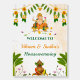 Make your Housewarming celebrations special with this Indian traditional Graha Pravesham welcome board. This is diy housewarming welcome poster, featuring Indian garland, watercolour elegant flowers and lord Ganesha is perfect for the housewarming party celebration. You can customize this for other occasion of your choice like Satyanarayan Puja, Ganesh Puja etc. This is a great decoration poster for your new house function and welcoming poster for guests by placing the sign at the entrance or doorway.
