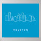 This design features a sketch of the Houston Texas skyline on a brown background.