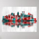 Red and Blue Skyline of Houston, a large metropolis in Texas, extending to Galveston Bay. It’s closely linked with the Space Center Houston