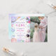 The card was great. I love ability to include information on back and that there is a follow through from front of card. The card stock was just as described. Colors of gold, pink and accents were great. The color showed up perfectly on the card. Nothing was overpowering. The pineapple graphic made it perfect of my Hawaiian theme