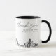 Modern Houston skyline coffee mug favor gift with "thank you" script. The design showcases a stunning sketch with the ability to customize your names and exact location. Enter the Zazzle design tool for additional customizations.