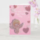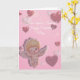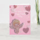 This is for that husband who wants to experience a huge smooch from his wife, the card has a very cute Cupid on it he has blonde wavy hair and is smiling with a wink. There are hearts and tiny sparkles on the card.