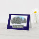 "HOW ARE YOU?" NOTECARD FEATURES A PEACEFUL WINTER LANDSCAPE OF EVERGREEN TREES CLUSTERED ON A SNOWY HILLSIDE. A LONE BENCH SITS IN THEIR SHADOW. BLANK INSIDE FOR YOUR OWN MESSAGE.