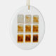 Toast done at various levels from very light to burnt to reflect the difference in peoples tastes and arranged in a three by three grid double sided ceramic Christmas ornament