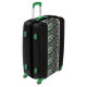 The luggage itself is awesome. So much utility for a carry-on bag. Lots of zippered pouch compartments to keep everything from getting everywhere. And it has a TSA approved lock and a dust cover! Love it. The printing is terrific. Love the way it wraps around the top and bottom. So happy the bumpers, wheels and handle color matches the design perfectly. She's gorgeous.