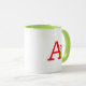 I was thrilled this came out so well. It is a very attractive mug with the colored handle and interior. Being able to personalize it was easy! It was designed for an end of the year thank you gift to the special recipient. perfect. Text lines up perfectly parallel to the top edge of the mug.
