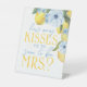 Elegant and Sweet How Many Kisses for the Soon to Be Mrs. Game Pedestal Sign. Part of our watercolor lemon and floral main squeeze bridal shower party collection. Featuring beautiful elegant dusty slate blue watercolor flowers and sweet yellow lemons.