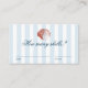 This elegant, 'How many shells?' enclosure card features a vintage inspired, red drawn illustration of a seashell on a soft blue striped background.