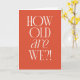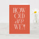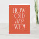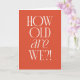 Celebrate growing old with a friend or loved one with this fun and funny simple Happy Birthday card. With its stylish text, this birthday card features the phrase "how old are we?!" on the front and birthday wishes on the inside. This funny card is great for a best friend, sibling, spouse and more. Please note that while the Zazzle logo can be removed, the Lea Delaveris Design logo will print on all cards to properly credit the creator of this original birthday card design.