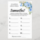 Blue Flowers How old was the Bride? English and Spanish version games included (front and back). Change wording to the design for English and Spanish versions. For additional customization (change wording, add or delete the number of photos, font color, font style ), click on personalize, scroll down and click on link "click to customize further".