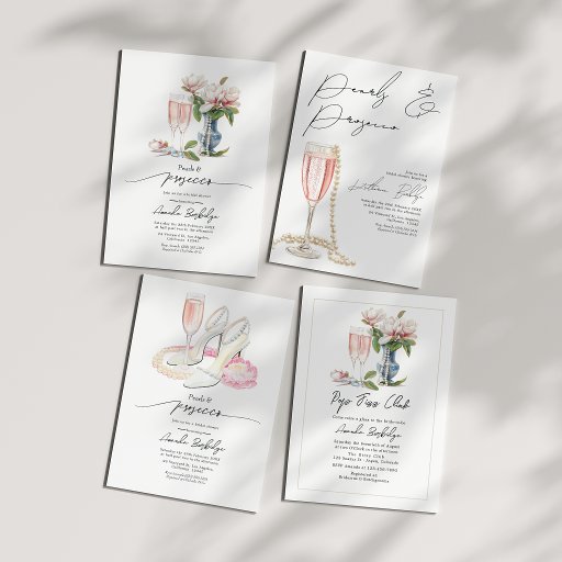 Add a playful touch to your pearls and prosecco bridal shower with this elegant "How Old Was the Bride?" game card! Featuring champagne glasses and delicate grapevine accents, this fun activity invites guests to guess the bride's age in various pictures. Perfect for creating laughter and nostalgic moments, this customizable game is a great addition to any bridal celebration.