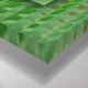 A macro shot of a flower of grass sprinkled with water droplets, the seeds turning the tip purple against a backdrop of rich green. Framing the photo is a glass mosaic of the field around it.