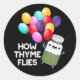 How Thyme Flies Funny Herb Pun Dark BG Classic Round Sticker
