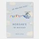 Oh, how time flies! Welcome your little guests with this cute air travel-themed party foam board featuring a wolf piloting a helicopter, colourful buntings, and soft watercolor clouds. Personalize the text to suit your party details.
