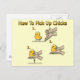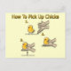Finally, a clear step by step guide for picking up chicks! This design gives directions in 3 simple steps on how to pick up chicks. First step, reach hands toward chicks. Second step, take chick in your hands. Third step, pick up the chick!