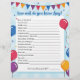 A birthday game of "How Well Do you Know...?" Allows your party goers to fill out fun questions to guess about the birthday person and maybe have a shot at winning prizes for the party!