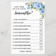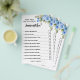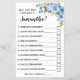Blue Flowers How well do you know the Bride English and Spanish version game included (front and back). Change Names to the design for English and Spanish version. For additional customization (change question and other wording, font color, font style ), click on personalize, scroll down and click on link "click to customize further".