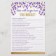 How well do you know the Bride? Game for Bridal Shower in purple and gold. A little trivia about the new bride to be is always fun to play and challenged your guests.