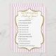 An fun and elegant pink and gold bridal shower game featuring faux gold glitter accent frame and pink and white stripes with gold and black text. This entertaining bridal shower activity will be a hit. Change the questions to suit! How well do you know the bride, bridal trivia game.