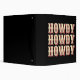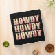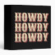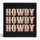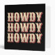 Retro style cowboy "Howdy Howdy Howdy" text design with striped letters in yellow, red and beige colors