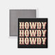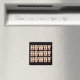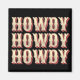 Retro style cowboy "Howdy Howdy Howdy" text design with striped letters in yellow, red and beige colors