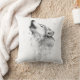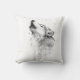 Howling Gray Wolf in Watercolor Painting Style Throw Pillow