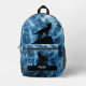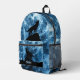 Howling Wolf blue sparkly smoke silhouette geometric abstract. Personalize with your custom initial and name. Cool fashion accessory bag for him. Create a unique and personalized backpack with a custom touch!