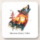 Howling wolf double exposure sunset personalized beverage coaster