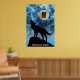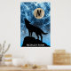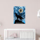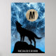 Howling Wolf full moon blue black Custom Monogram Poster