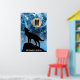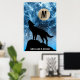 Howling Wolf full moon blue black Custom Monogram Poster. Personalize with your custom initial and name. Howling Winter Wolf snowy blue smoke Abstract Poster Wall Art Décor. Abstract geometric winter snowy blue and white smoke with black wolf silhouette.